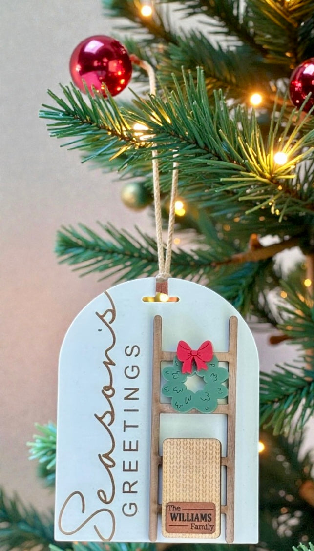 Add a personalized touch to your holiday decor with our Family Name Ornament! This laser cut piece features your chosen family name, making it a unique and meaningful addition to your tree. Spread holiday cheer with this charming, one-of-a-kind ornament. (Not just for the tree - it looks great on a wreath too!) 🎄